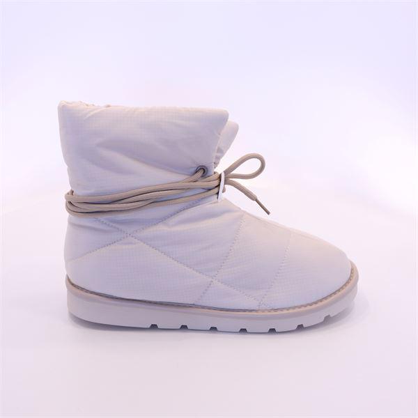 Стеганая дутая ткань бежевого цвета смотрится благородно и стильно. Утяжка на щиколотке позволяет регулировать обувь по полноте ноги. Благодаря компактности и длине чуть выше щиколотки, эта модель - идеальный вариант для поездок в машине, похода в кино, по магазинам.